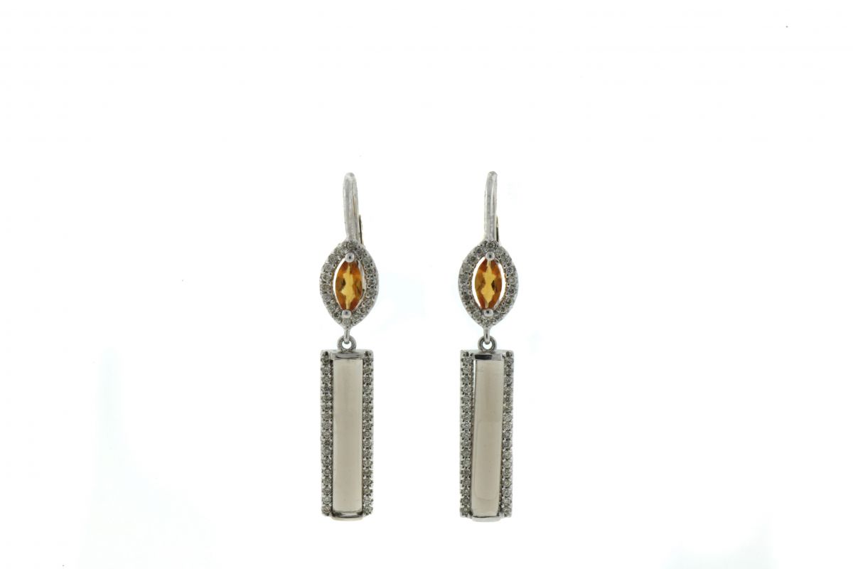 Citrine, Smoky Quartz and Diamond Dangle Earrings