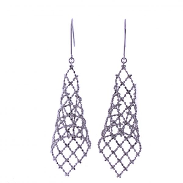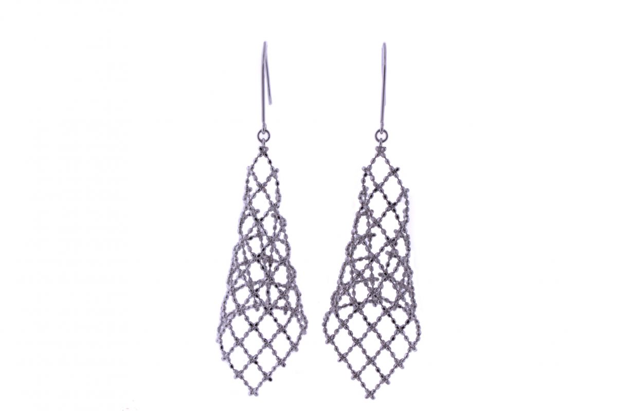 18k White Gold Mesh Diamond Shape Earrings 14x47mm